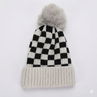 Este gorro infantil con diseño de cuadros aporta un toque moderno y divertido a los días fríos.