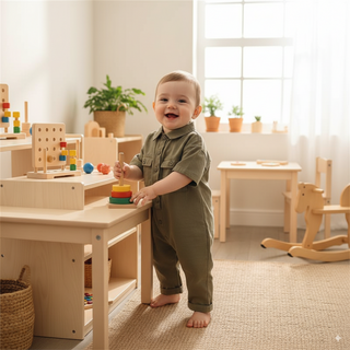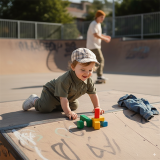 Disponible en tonos neutros como caqui y marrón, cuenta con tirantes ajustados con botones, prácticos bolsillos delanteros y traseros, y un diseño holgado que facilita el movimiento y el juego de los más pequeños.