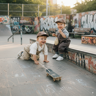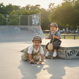 Este peto bombacho unisex para bebés y niños pequeños combina comodidad y estilo urbano en una sola prenda.