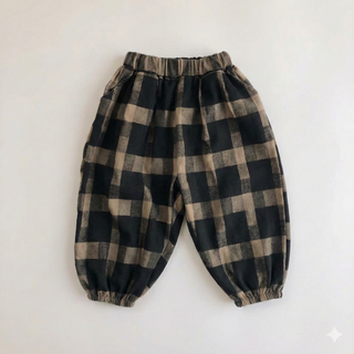 Este pantalón bombacho infantil de cuadros grandes combina estilo clásico y comodidad moderna.