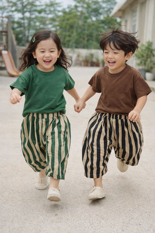 Su diseño de rayas verticales en contraste aporta un aire divertido y actual, ideal para los días de juego y aventura. El corte holgado y la cintura elástica aseguran libertad de movimiento y un ajuste perfecto. Confeccionado en un tejido ligero y transpirable, es perfecto para el entretiempo o los días más cálidos.
