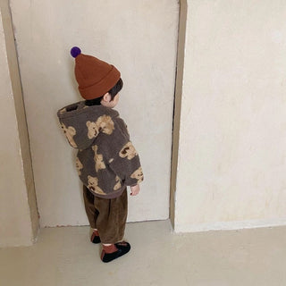 Esta adorable sudadera de peluche con capucha combina estilo urbano y calidez para los días fríos. Con un diseño unisex, presenta un tejido suave tipo borreguito que invita a abrazar y jugar sin límites.
